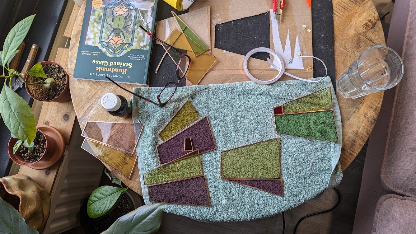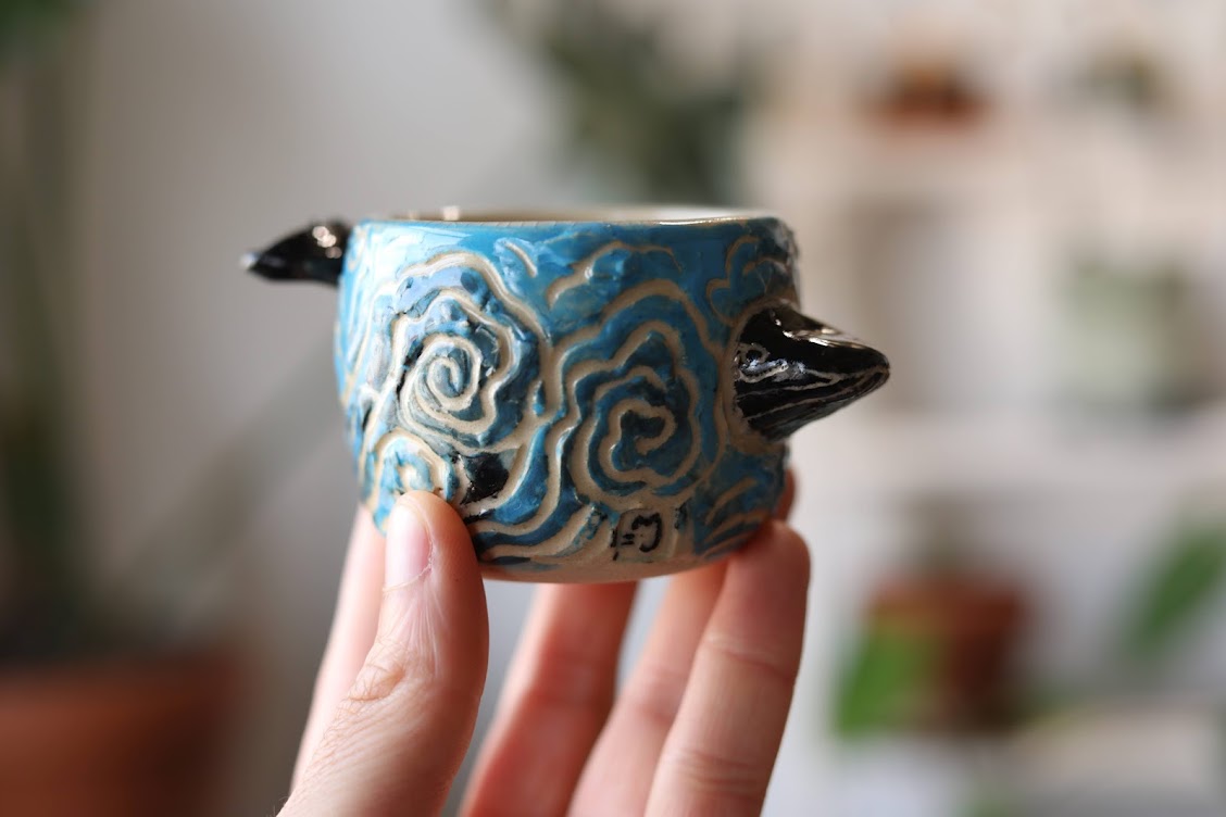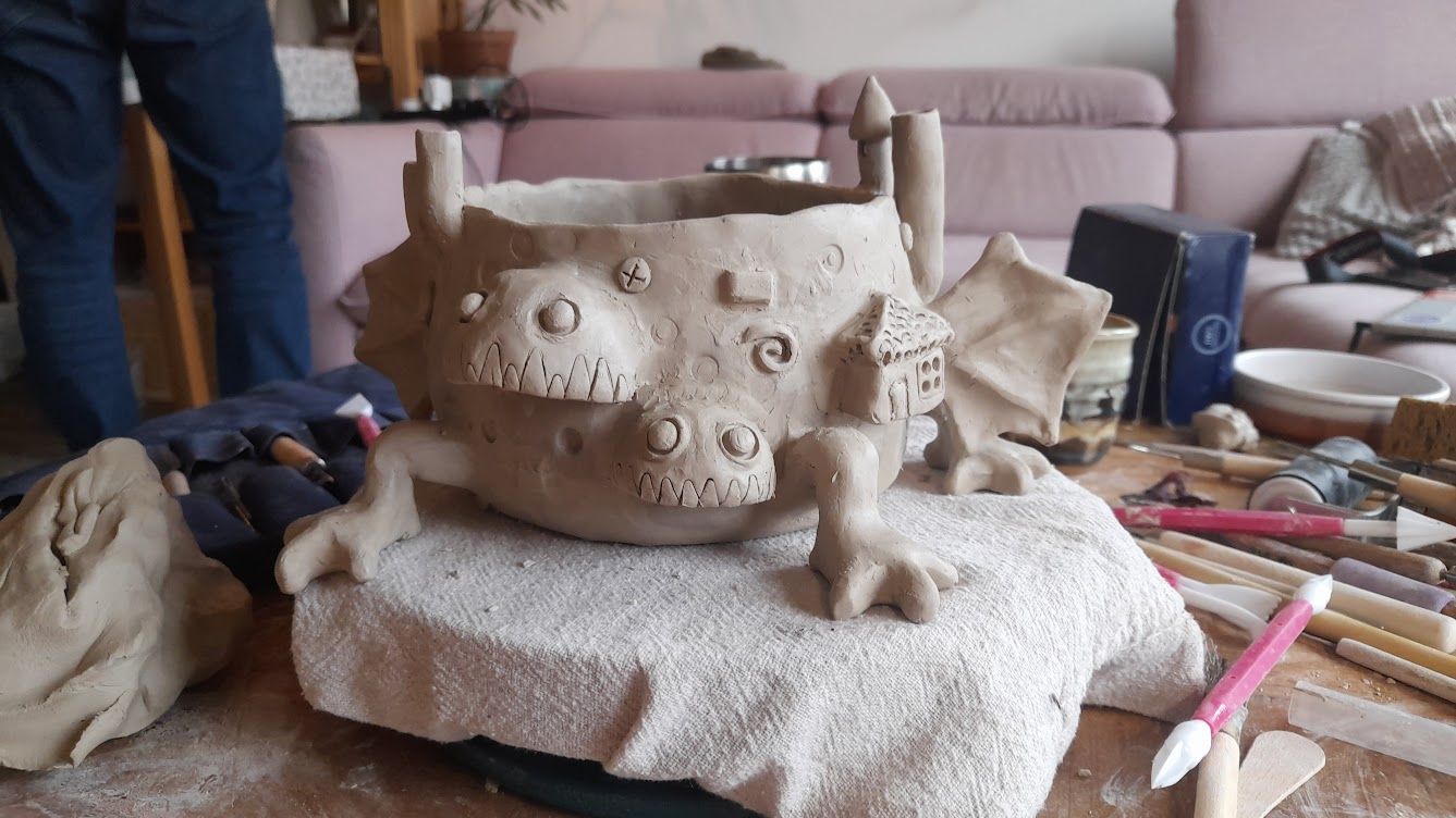 In my free time, I love creating art from all kinds of medium - ceramics, stained glass, felt, you name it! Here some pictures of a few of many creations - a stoneware teapot, stained glass radish, felt pigeon with a croissant, a blue whale swimming through a cup, howl's castle planter in making., more in my instagram: https://www.instagram.com/mashpotato.ceramics/